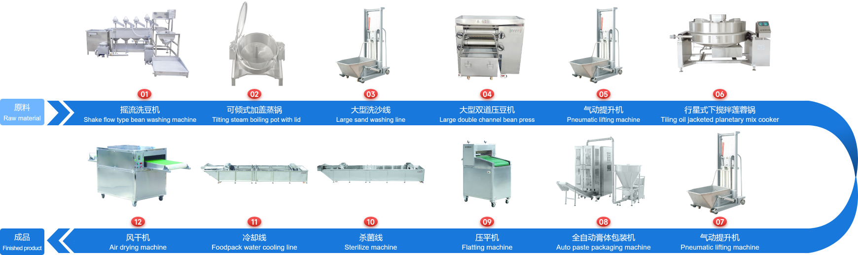 企業經多年研制開發的下攪拌可傾式蓮蓉鍋、下攪拌夾層鏟鍋、可傾式蒸煮鍋、去皮去核打漿機、立式熱抽真空包裝機、餡料風干壓平機、餡料冷卻線、江米條成型機、循環過濾油炸鍋、下出料脫油機等設備在國內同類設備中達到綠色環保標準,已報國家專利局和有關部門申請認證,成為企業的品牌產品,深受廣大客戶的支持和信賴。